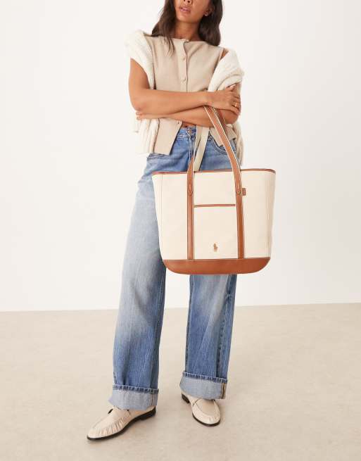 Polo Ralph Lauren tote bag in ecru & brown