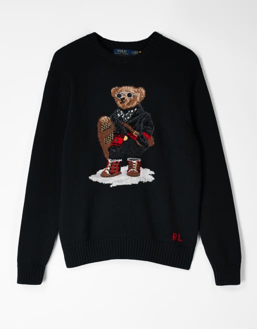 Polo Ralph Lauren unisex holiday bear cotton blend knit jumper in black