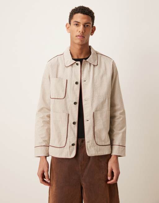 Pompeii striped structured button up chore jacket in cream