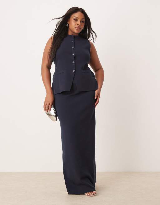 Pretty Lavish Curve knit maxi skirt co-ord in navy