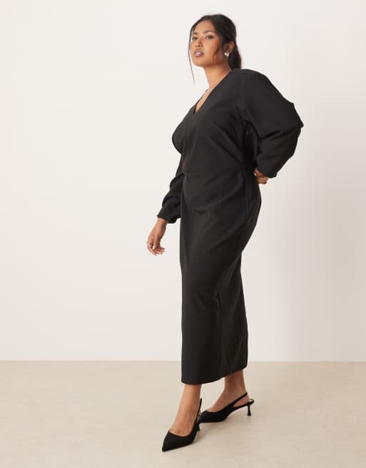 Pretty Lavish Curve long sleeve plunge maxi dress in black