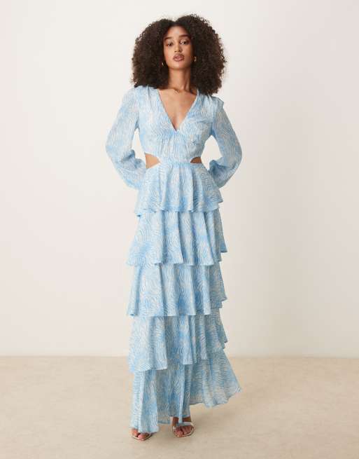 Pretty Lavish Ashton cut-out ruffle maxi dress in blue swirl print