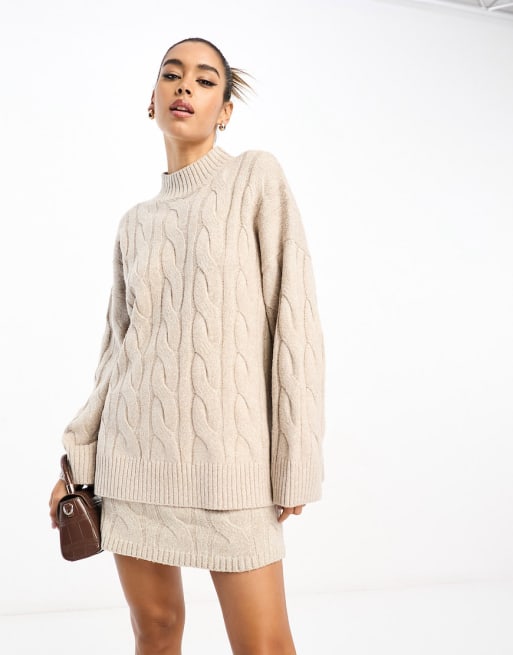 Pretty Lavish cable knit co-ord in beige