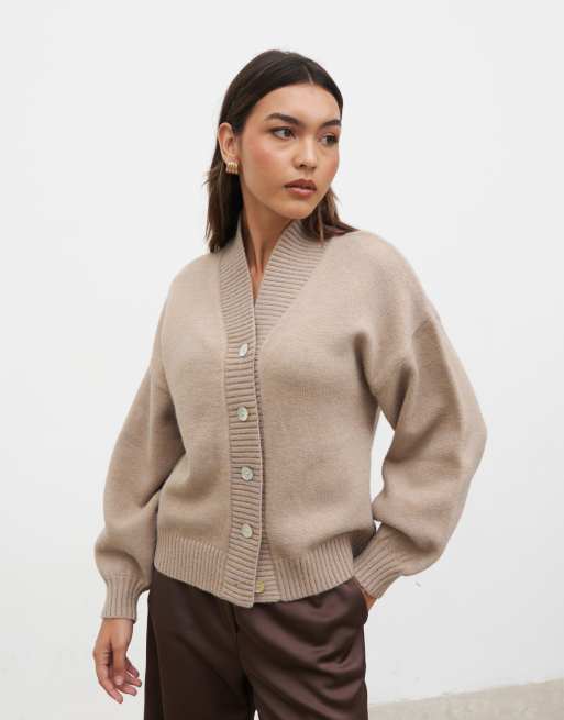 Pretty Lavish chunky knit buttoned bomber in beige