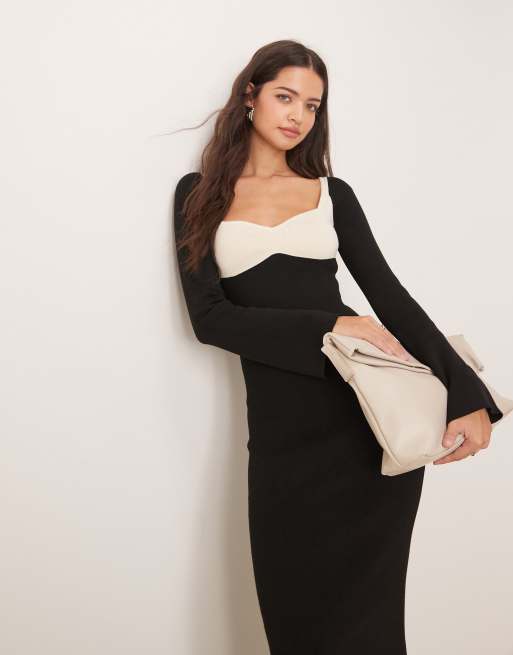Pretty Lavish contrast knit maxi dress in black