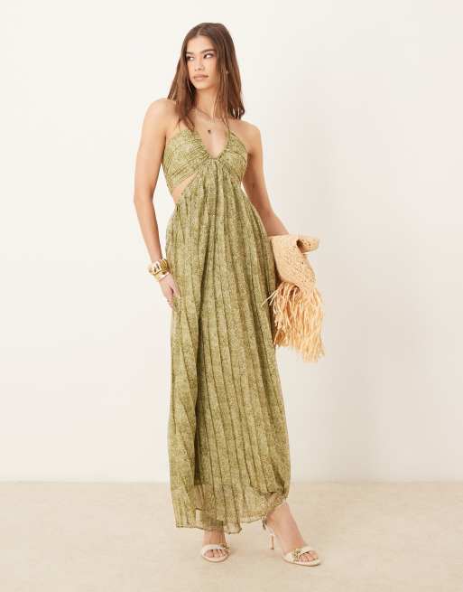 Pretty Lavish cut-out pleated maxi dress in olive floral