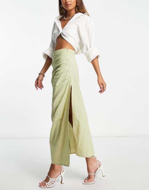 Pretty Lavish midi skirt co-ord with leg split in olive