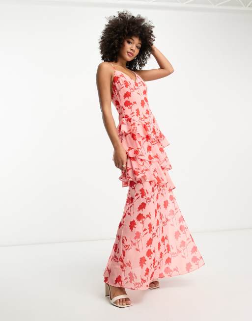 Pretty Lavish ruffle split maxi dress in pink and red floral