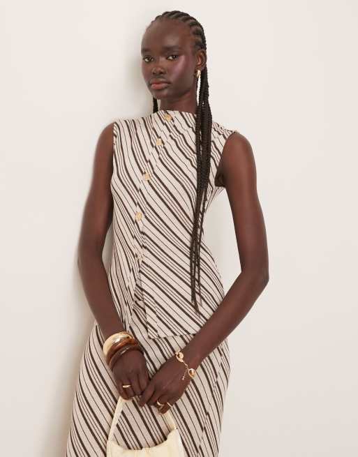 Pretty Lavish stripe jersey co-ord in brown and cream
