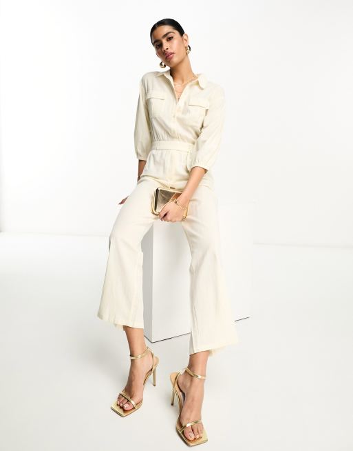Pretty Lavish tie waist utility jumpsuit in cream