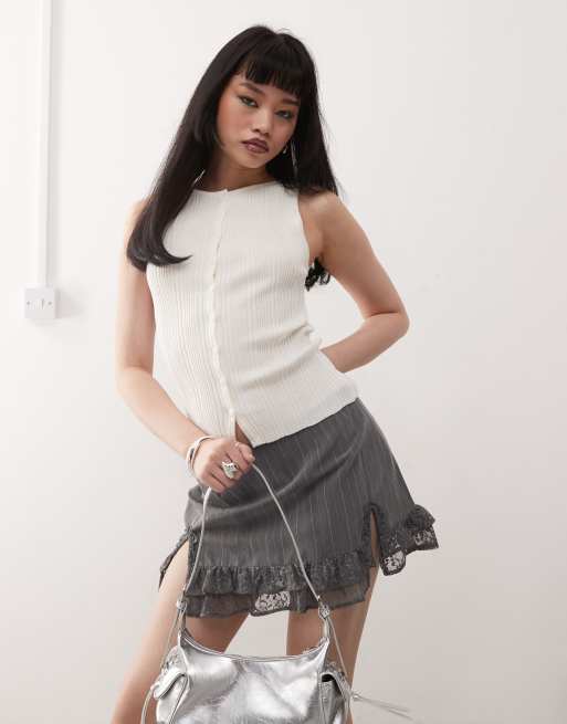 Princess Polly fine rib button through sleeveless top in white