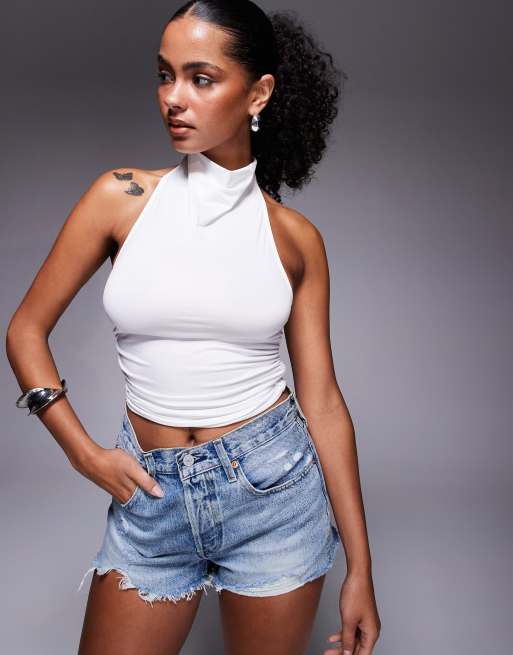 Princess Polly Giggle slinky high cowl halterneck top in white