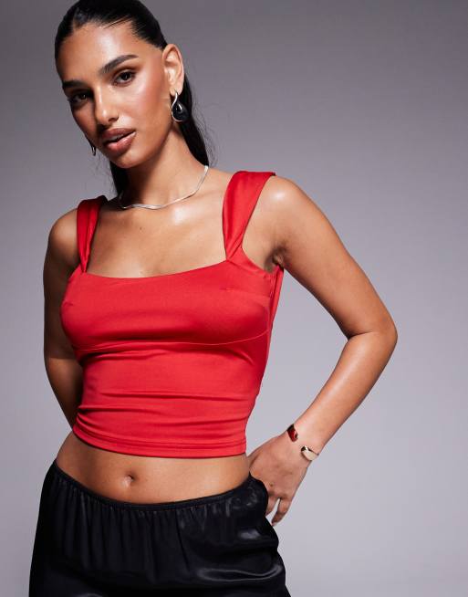 Princess Polly Imelda double sculpted slinky low open tie back top in red