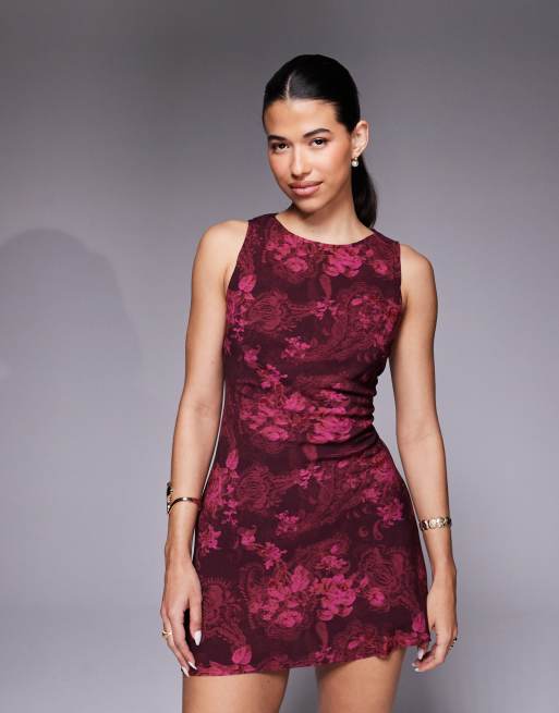 Princess Polly Vivre mesh mini dress in burgundy paisley rose print