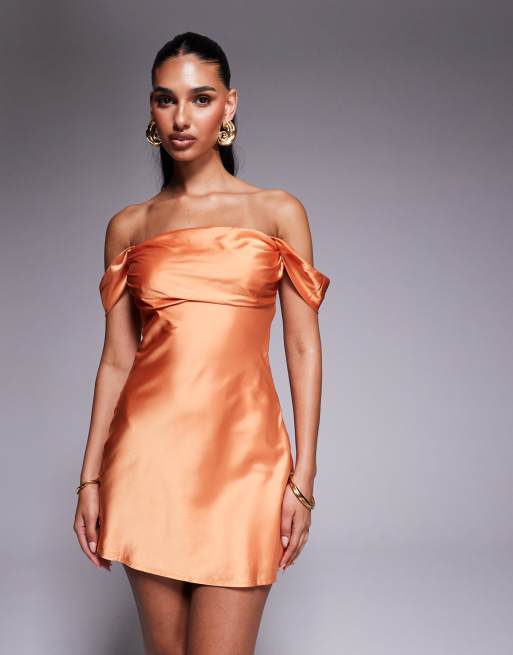 Princess Polly Zabbarra satin bardot drape detail mini dress in orange