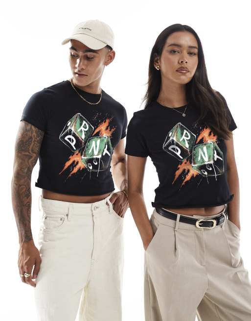 PRNT Arizona dice front print ww crop t-shirt in black