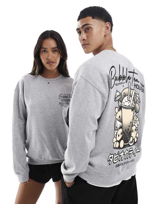 PRNT Bubble tea house front and back print sweatshirt in sports grey