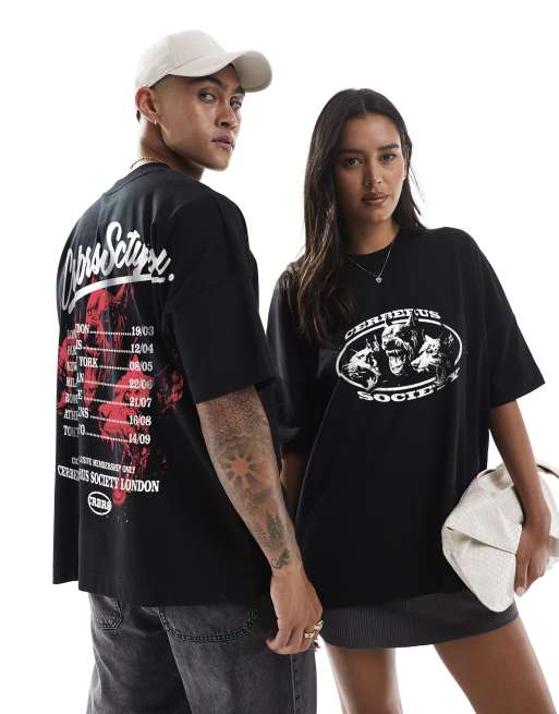 PRNT Cerberus society front and back print oversized t-shirt in black
