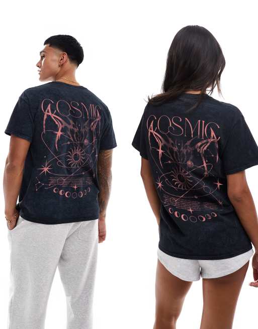 PRNT Cosmic front and back print washed t-shirt in snow wash