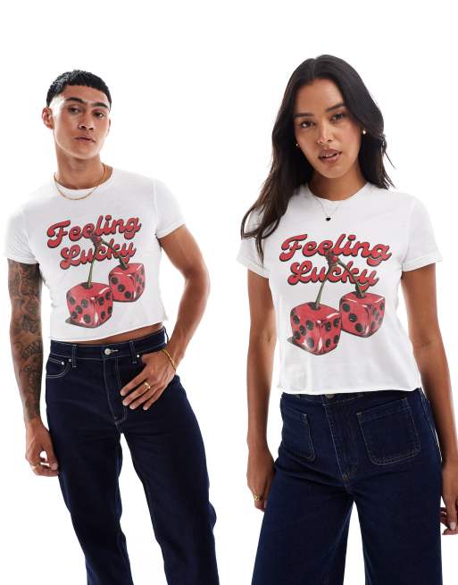 PRNT Feeling lucky front print crop t-shirt in white