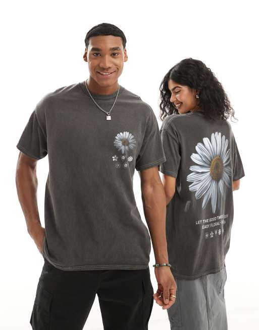 PRNT Good times grow graphic t-shirt front and back print in charcoal overdye