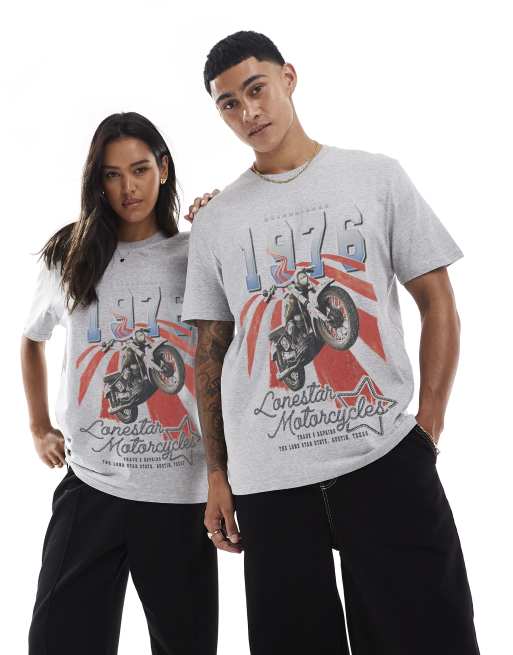 PRNT Lonestar motorcycle front print relaxed t-shirt in sports grey