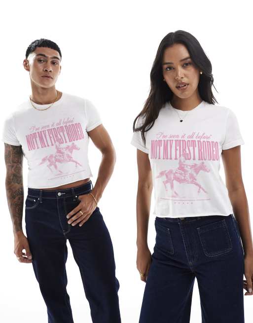 PRNT Not my first rodeo crop front print crop t-shirt in white