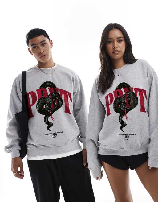 PRNT Prnt snake front print sweatshirt in sports grey