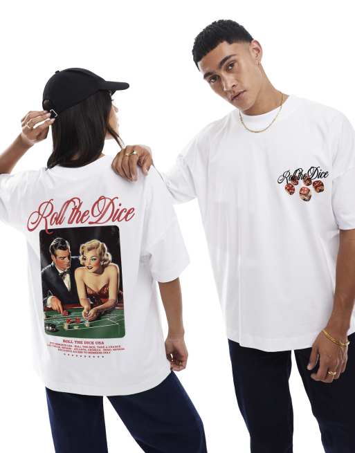 PRNT Roll the dice usa front and back print oversized t-shirt in white