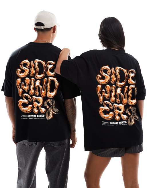 PRNT Sidewinder chrome front and back print oversized t-shirt in black