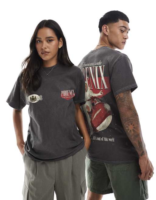 PRNT Space phoenix front and back print washed t-shirt in charcoal overdye