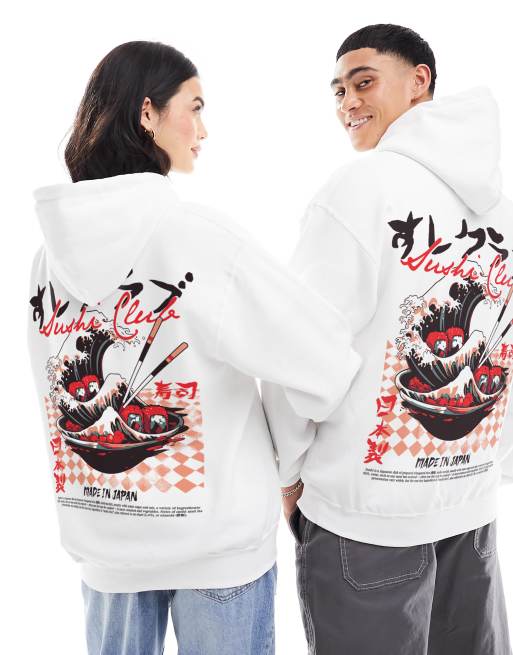 PRNT Sushi club front and back print classic hoodie in white