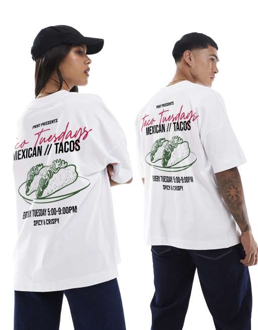 PRNT Taco tuesdays front and back print oversized t-shirt in white