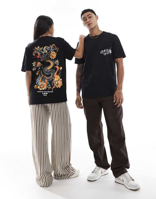 PRNT Tattoo snake cny front print and back print relaxed t-shirt in black