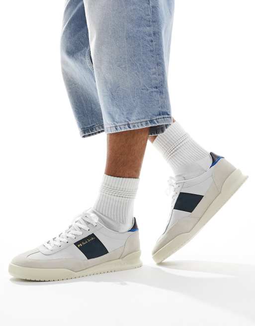 Paul Smith Dover suede mix trainer in white cream mix