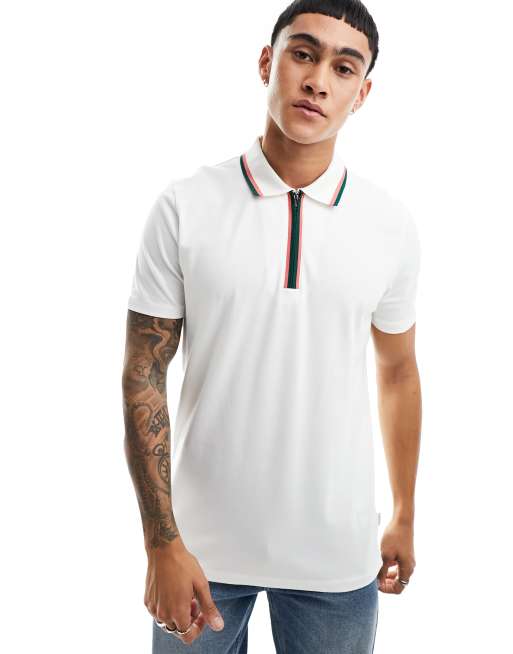 PS Paul Smith contrast trim zip pique polo in off white