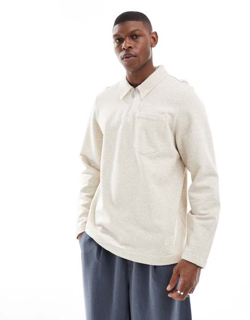 PS Paul Smith half zip polo sweatshirt with patch logo in sand