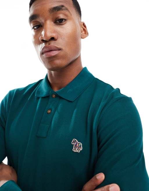 PS Paul Smith regular fit logo long sleeve polo in teal