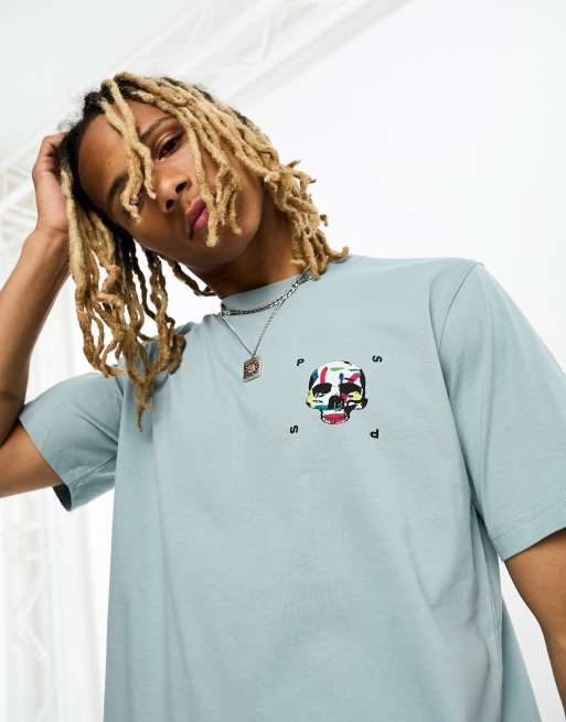 PS Paul Smith scull chest graphics t-shirt in light blue