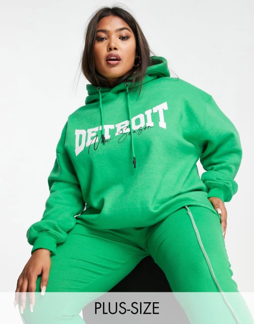Public Desire Curve Detroit logo oversized hoodie sweatshirt in green