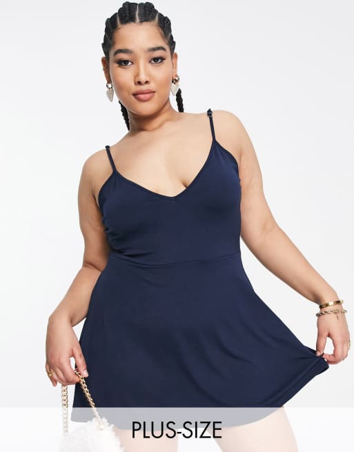 Public Desire Curve double layered slinky low back skater dress in navy