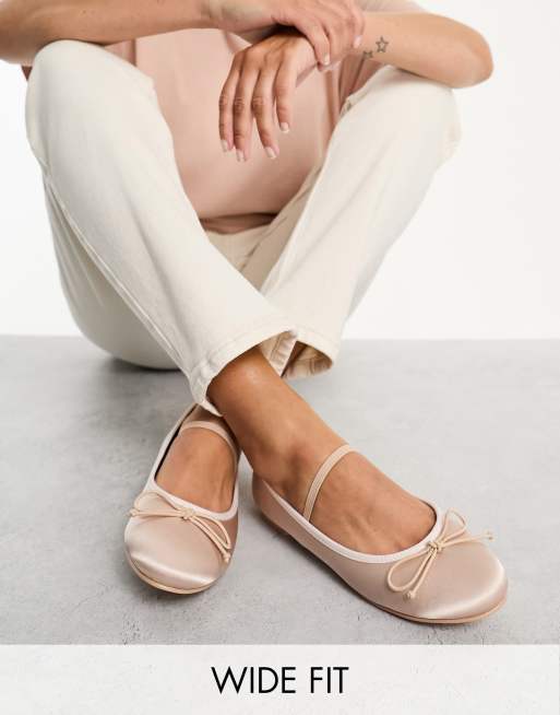 Public Desire Wide Fit Alexa ballet pumps in baby pink satin