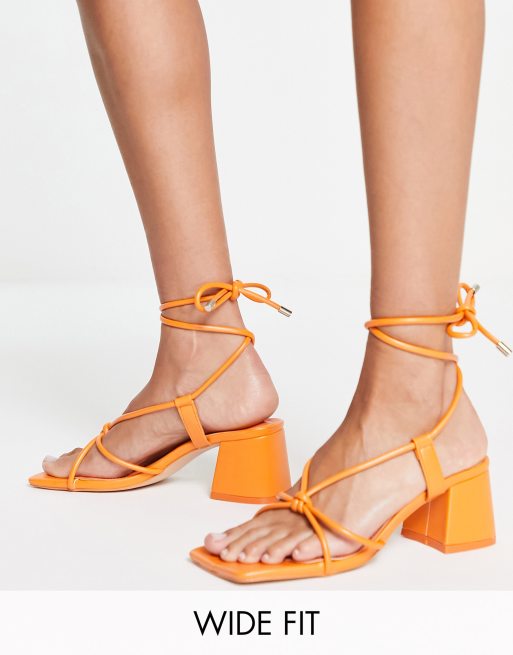 Public Desire Wide Fit Aloha knot strap mid heel sandals in orange