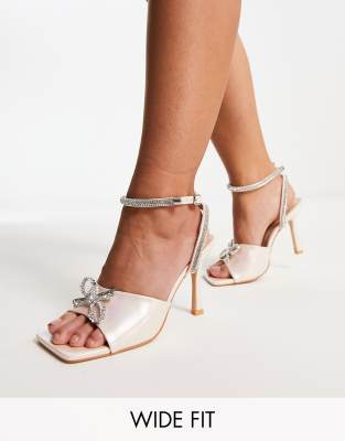 Public Desire Wide Fit Exclusive Front Row bow sandals in pearlescent pink