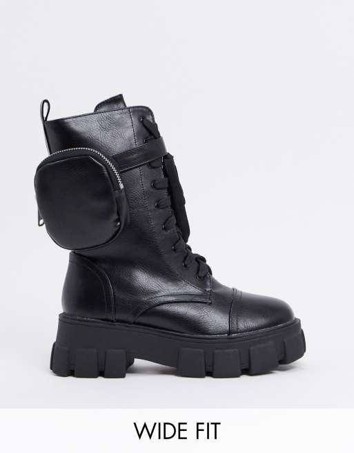 Public Desire Wide Fit Intention chunky boot with pouch in black