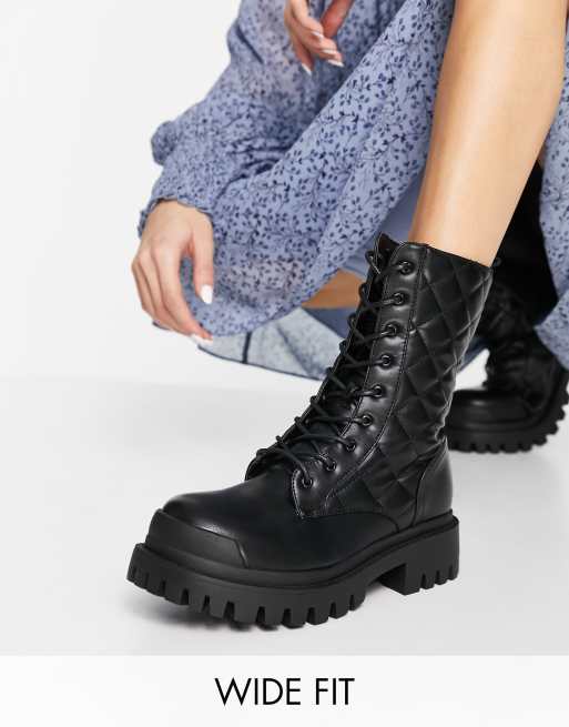 Public Desire Wide Fit Outstanding chunky flat ankle boots in black