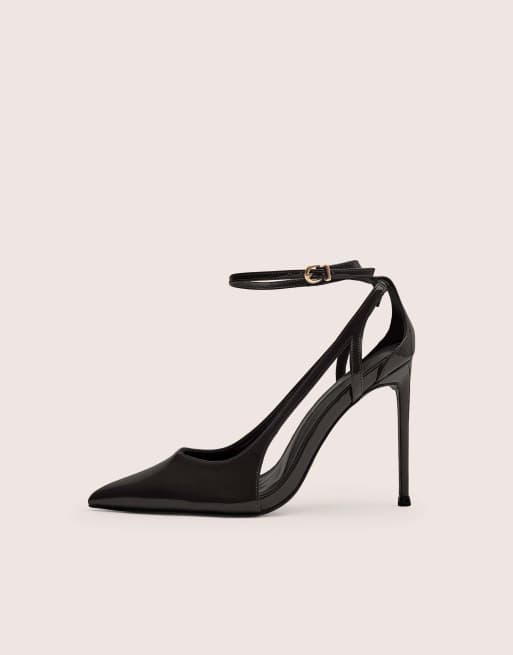 Public Desire Allegedly patent cut out detail ankle strap court shoes in black