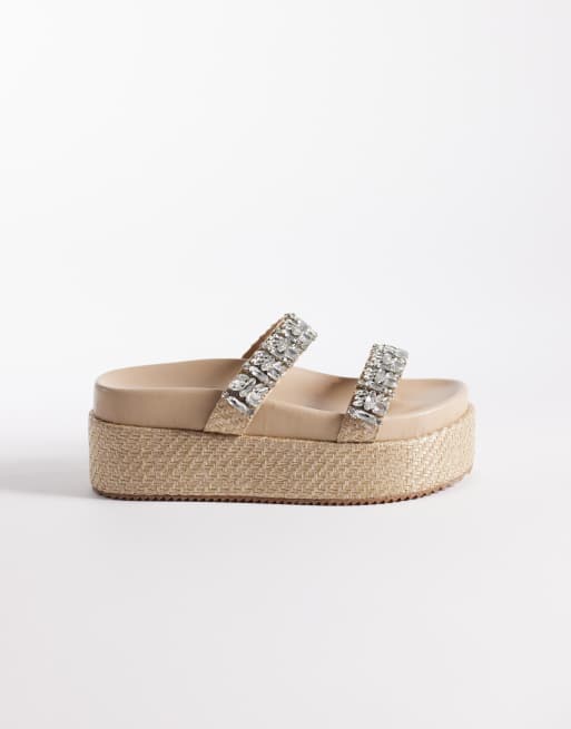Public Desire Darcy paltform raffia sandals with embellished straps