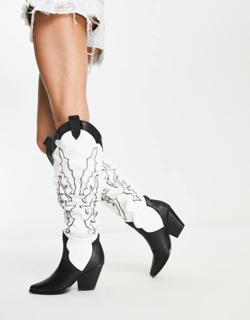 Public Desire Exclusive Rodeo ruched over the knee cowboy boots in black and white