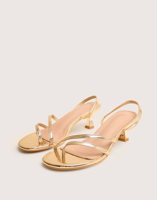 Public Desire Helios mirror pu asymmetric toe strap sling back mid heels in gold